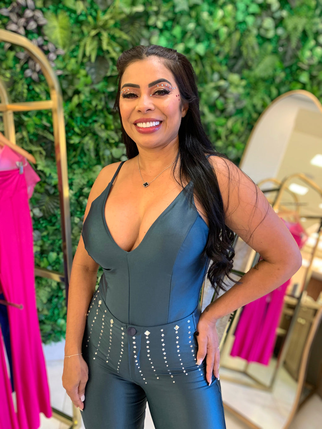 • Alças finas e decote profundo que valorizam o busto