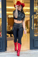 A Calça Western é a escolha perfeita para quem busca uma peça marcante, que valoriza as curvas e eleva qualquer produção. Confeccionada em malha Prada com recortes em courino, ela une sofisticação, atitude e conforto.