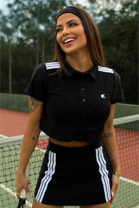 O design é marcado por listras contrastantes nos ombros, que adicionam personalidade e um ar atlético sofisticado. A gola estruturada e os botões frontais reforçam o visual contemporâneo, enquanto o bordado discreto no peito oferece um charme sutil e exclusivo.