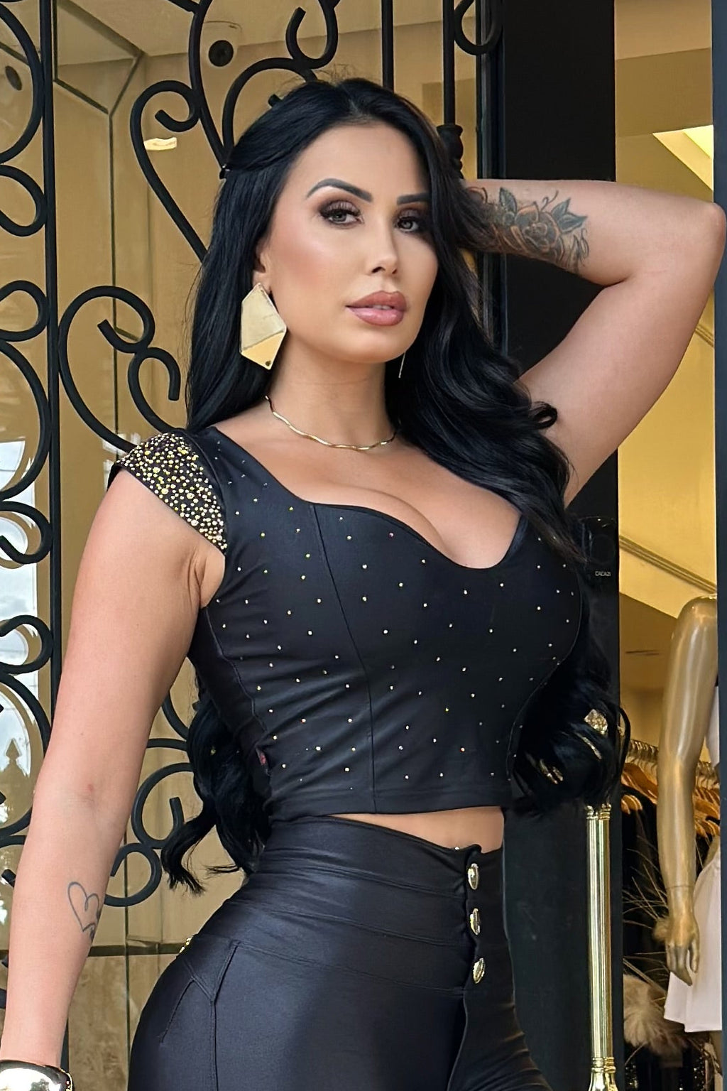 - Strass por toda a peça: brilho e glamour em cada detalhe. 💎