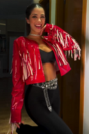 Jaqueta Barretos Vinil – Prata e Franjas para um Visual Impactante