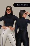 Seu design cropped com modelagem ajustada valoriza a silhueta, enquanto a gola alta e o zíper frontal funcional trazem um toque esportivo e moderno. O detalhe do logo KISS nas costas garante identidade e exclusividade ao visual. Perfeita para treinos ao ar livre, deslocamentos ou para compor looks estilosos no dia a dia.