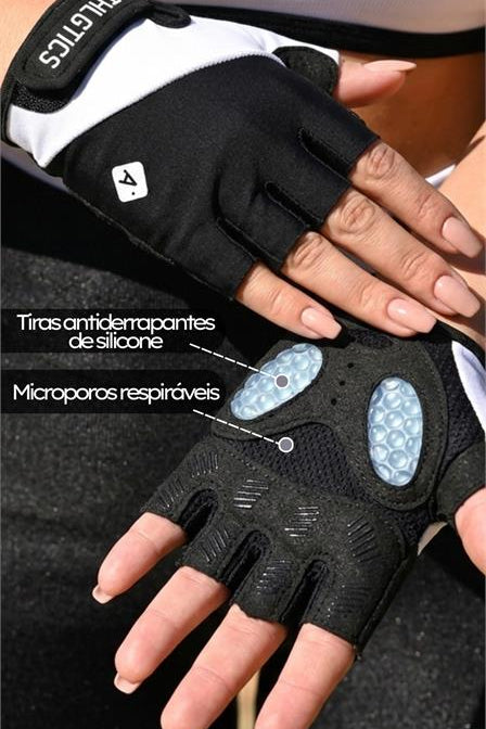 Possui almofada de ar espessada na palma, ajudando a reduzir impactos e prevenindo calos durante o uso de barras, halteres e aparelhos.