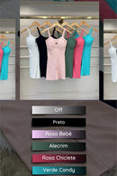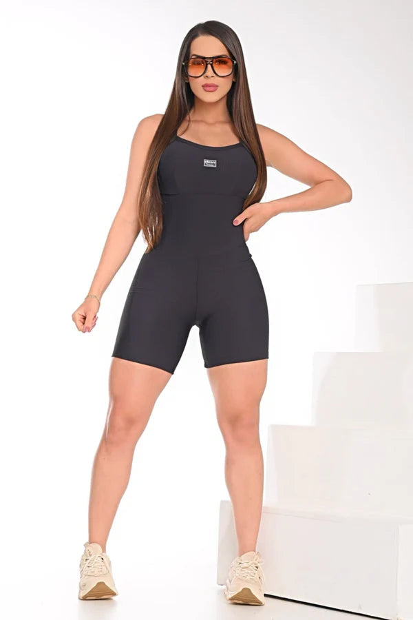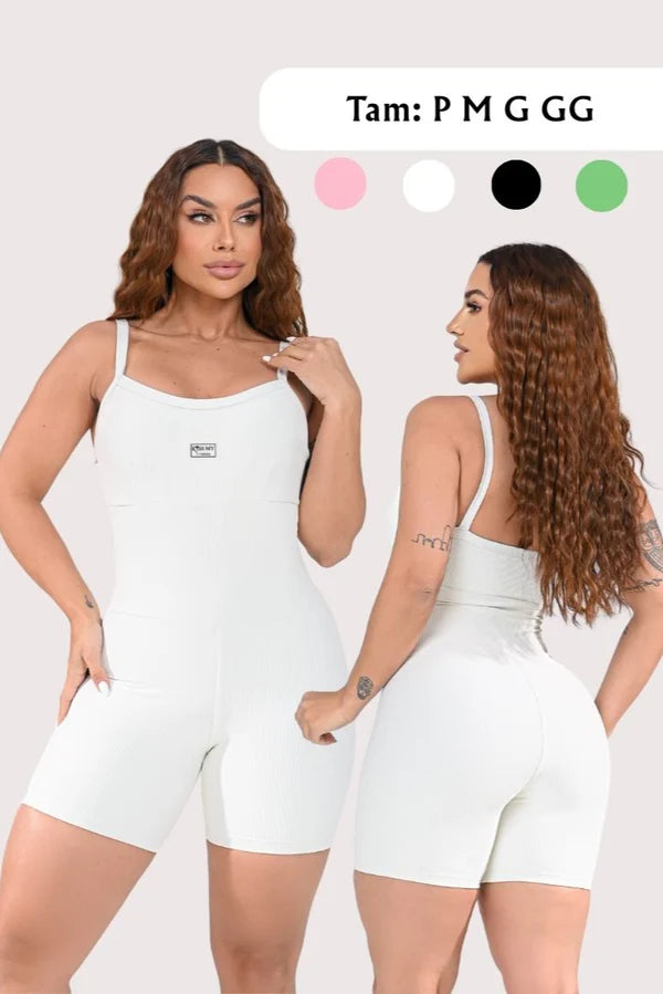 Sua modelagem anatômica valoriza as curvas, com cintura alta e compressão leve na região abdominal, que modela sem apertar. O decote reto com alças finas confere um ar contemporâneo e feminino, enquanto o comprimento na coxa garante liberdade com estilo.