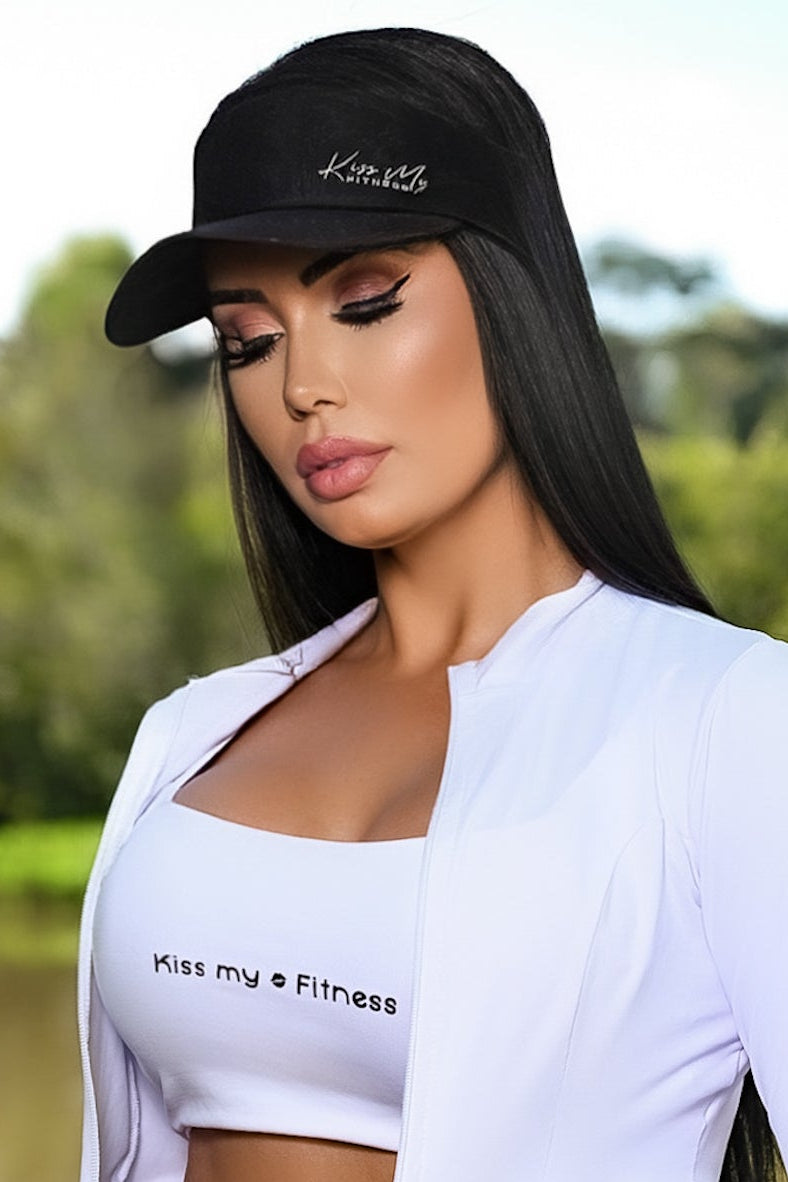 O design minimalista é valorizado pela logo Kiss My Fitness bordada na parte frontal, trazendo identidade e estilo à peça. A aba curva ajuda a proteger o rosto da luz solar, enquanto o ajuste posterior garante encaixe firme e confortável.